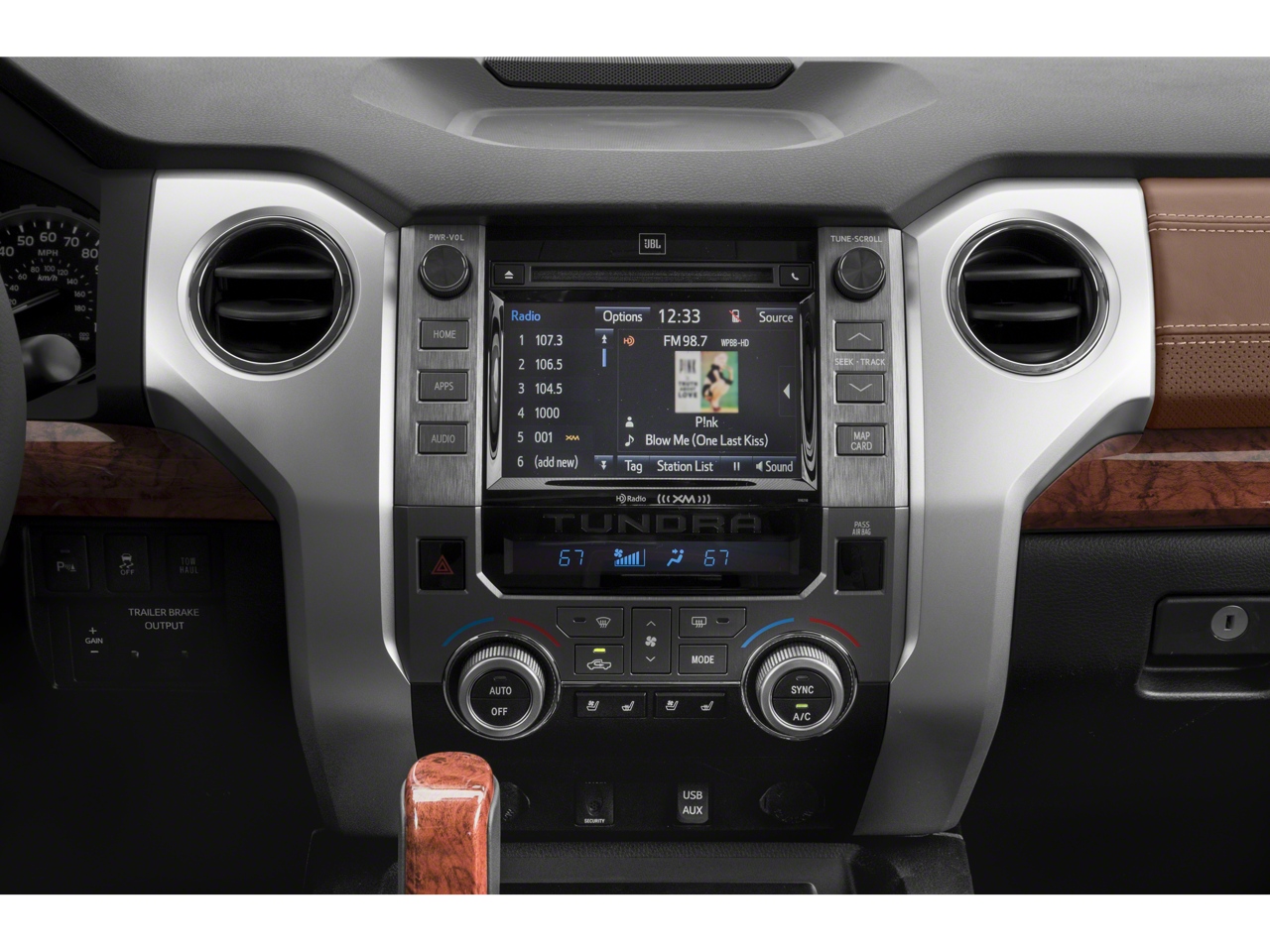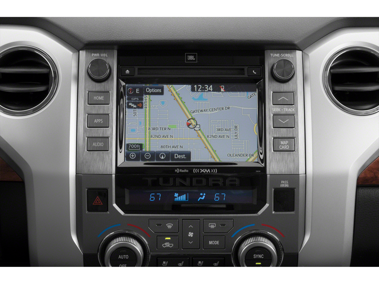 - Radio: Entune Premium JBL Audio AM/FM/HD Radio/CD -inc: integrated navigation system, MP3/WMA playback capability, AM/FM cache radio, 12 JBL speakers including subwoofer and amplifier, 7" high-resolution touch-screen display w/split-screen, auxiliary audio jack, USB media port, HD predictive traffic and Doppler weather overlay, Bluetooth® hands-free phone capability w/advanced voice recognition, phone book access and music streaming and Siri Eyes Free, Entune App Suite, Destination Search, iHeartRadio, Yelp and Slacker Radio, SIRIUSXM Satellite Radio, complimentary SiriusXM All Access 90-day trial subscription