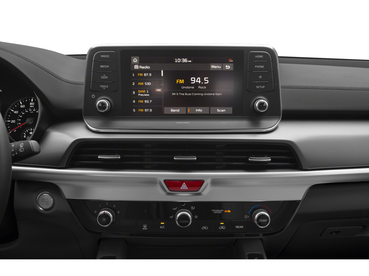 - Radio: AM/FM/MP3/SiriusXM Audio System -inc: UVO link infotainment system, w/smartphone integration for remote commands and remote vehicle status, 6-speaker, support for Android Auto and Apple CarPlay, 8" touch-screen color display, a total of 5 USB charge ports in all rows and Bluetooth® wireless connectivity w/voice recognition (a Bluetooth® enabled cell phone is required to use Bluetooth® wireless technology), Note: Remote's climate feature is not available on LX and S trim levels due to manual HVAC system