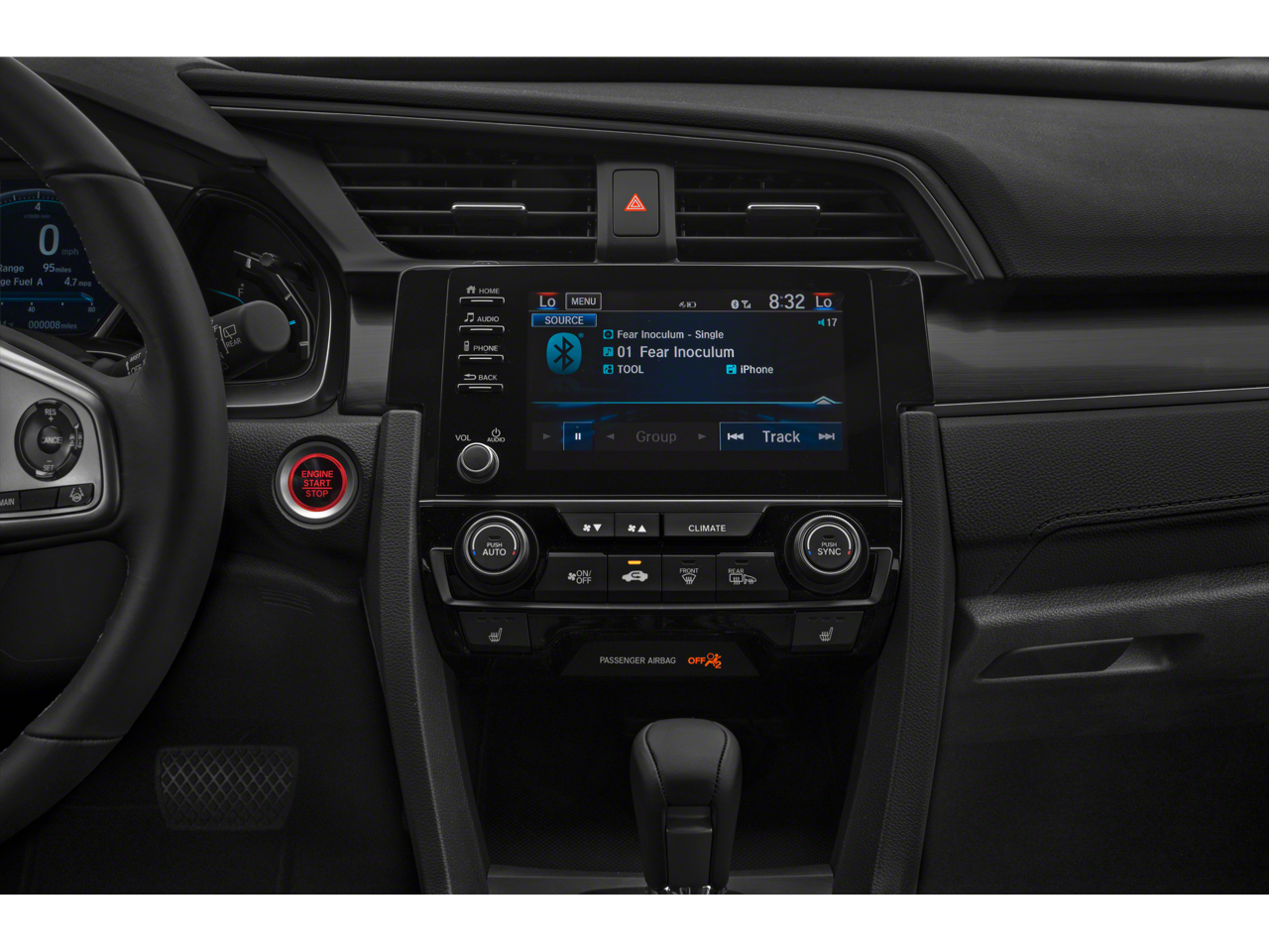 - Radio: 180-Watt HD Audio System -inc: 8 speakers, 7-inch display audio w/high-resolution electrostatic touch-screen, knob and hard keys for primary controls and customizable feature settings, Bluetooth® HandsFreeLink, Bluetooth® streaming audio, Radio Data System (RDS), speed-sensitive volume compensation (SVC), 1.5-amp USB smartphone/audio interface port in front console, 1.0-amp USB audio interface port in center console, HondaLink, Apple CarPlay integration, Android Auto integration, SiriusXM radio, SMS text message function, illuminated steering wheel-mounted controls and fin-type roof-mounted antenna