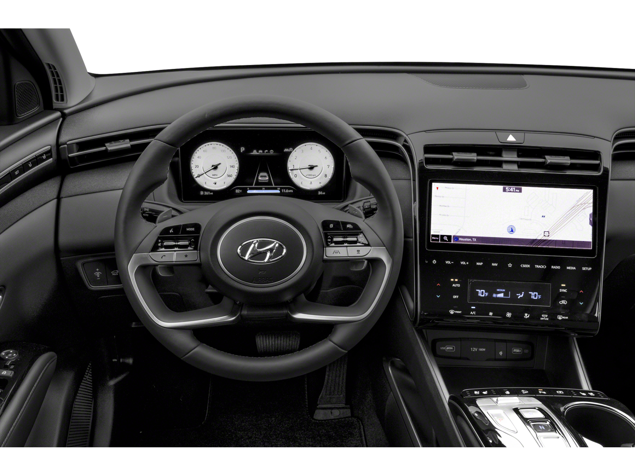 - Radio: Bose Premium w/AM/FM/HD/SiriusXM Audio System -inc: 10.25" color touchscreen w/onboard navigation and traffic flow including incident data via HD Radio (HERE) (AVN 5.0), 8 speakers (1 twiddler on center of instrument panel, 2 tweeters, 2 front door, 2 rear door, 1 woofer on rear quarter panel), digital 8 channel amp w/custom equalization, digital signal processing and dynamic speed compensation, Bluelink connected car system, Bluetooth w/voice recognition, wired Apple CarPlay and Android Auto and USB connectivity