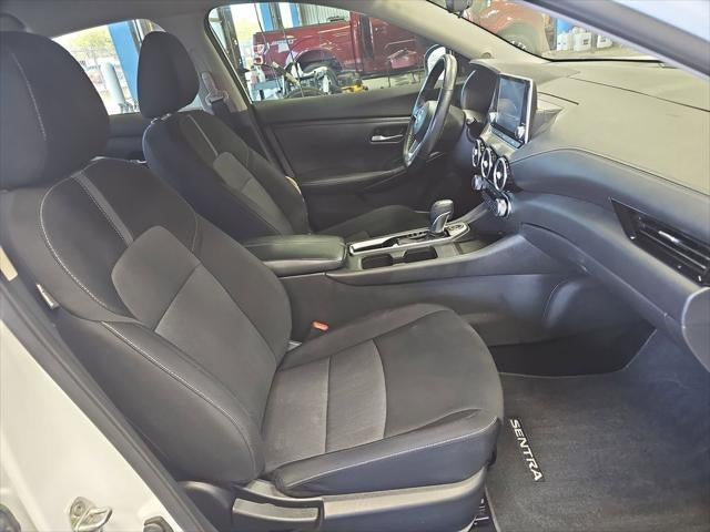 Our One Owner 2023 Nissan Sentra SV Sedan provides a premium feel inside and out with a bold Fresh Powder design! Powered by a 2.0 Liter 4 Cylinder that serves up 149hp matched to an Xtronic CVT so you can move with rewarding efficiency. This Front Wheel Drive sedan also achieves nearly 39mpg on the highway and is easy to handle with its agile dimensions. Our Sentra also turns heads as it masters the miles, showing off alloy wheels, heated power mirrors, and a chrome V-Motion grille.