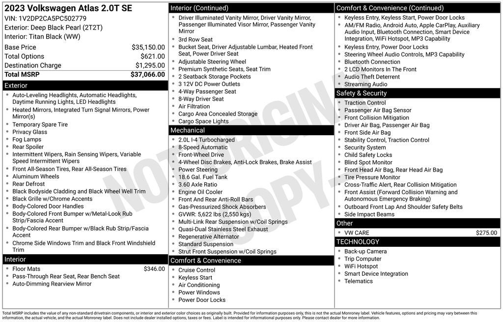 - Vehicle Name: Volkswagen Atlas