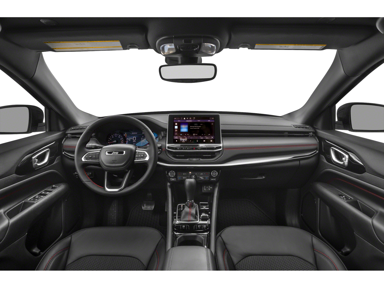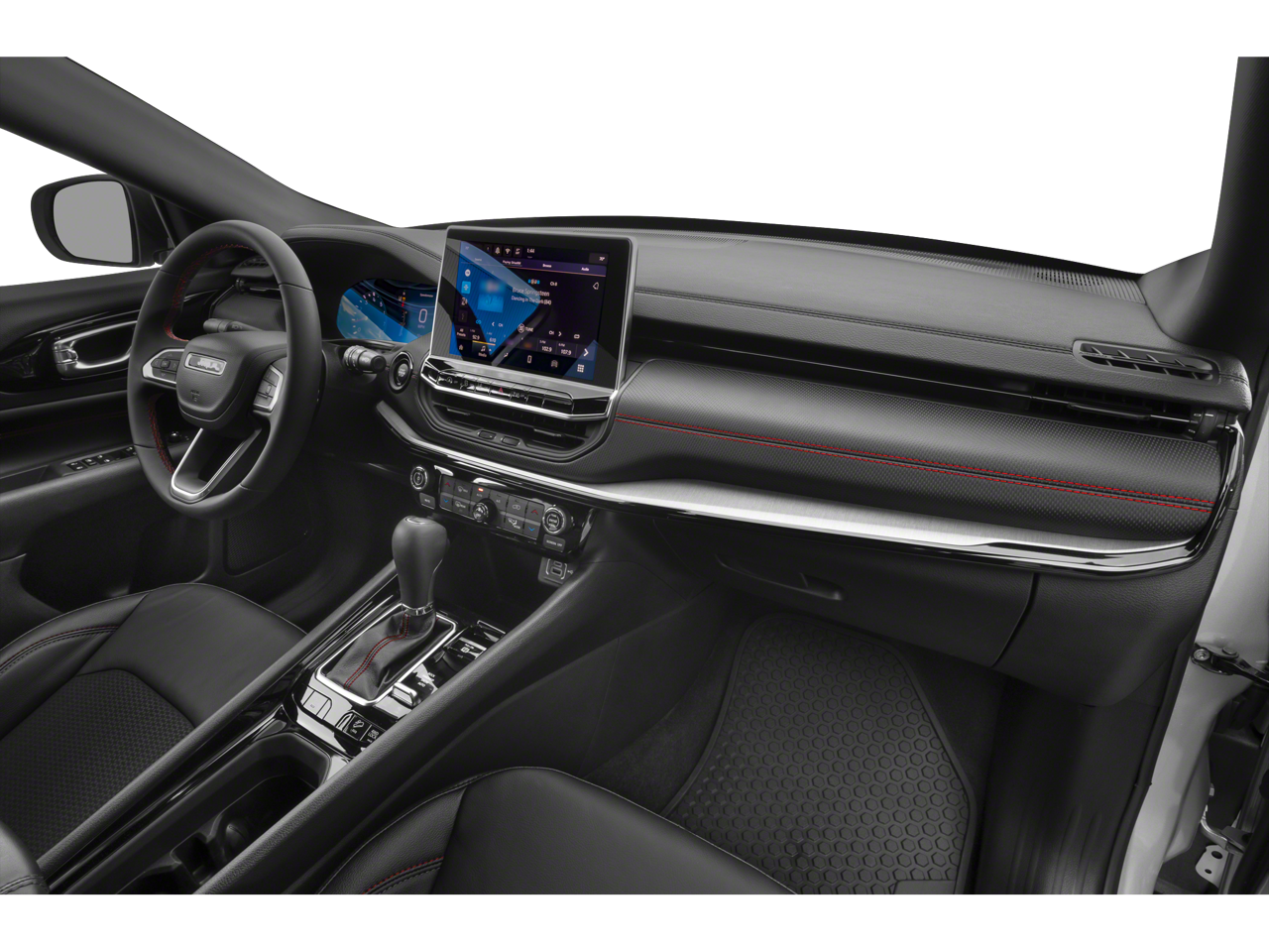 Once inside, our Trailhawk cabin is for owners who like to take charge of their days. The comfortable interior has leather/premium-cloth front seats, red accent stitching, a premium-wrapped steering wheel, dual-zone automatic climate control, pushbutton ignition, keyless access, and versatile cargo space for your gear. Uconnect technology is standard for infotainment, offering easy connections with a 10.1-inch touchscreen, a 7-inch driver display, Apple CarPlay/Android Auto, WiFi compatibility, Bluetooth®, voice activation, and six-speaker audio.